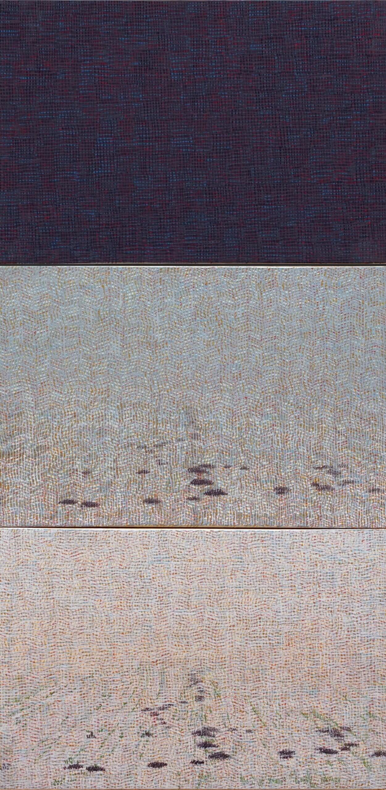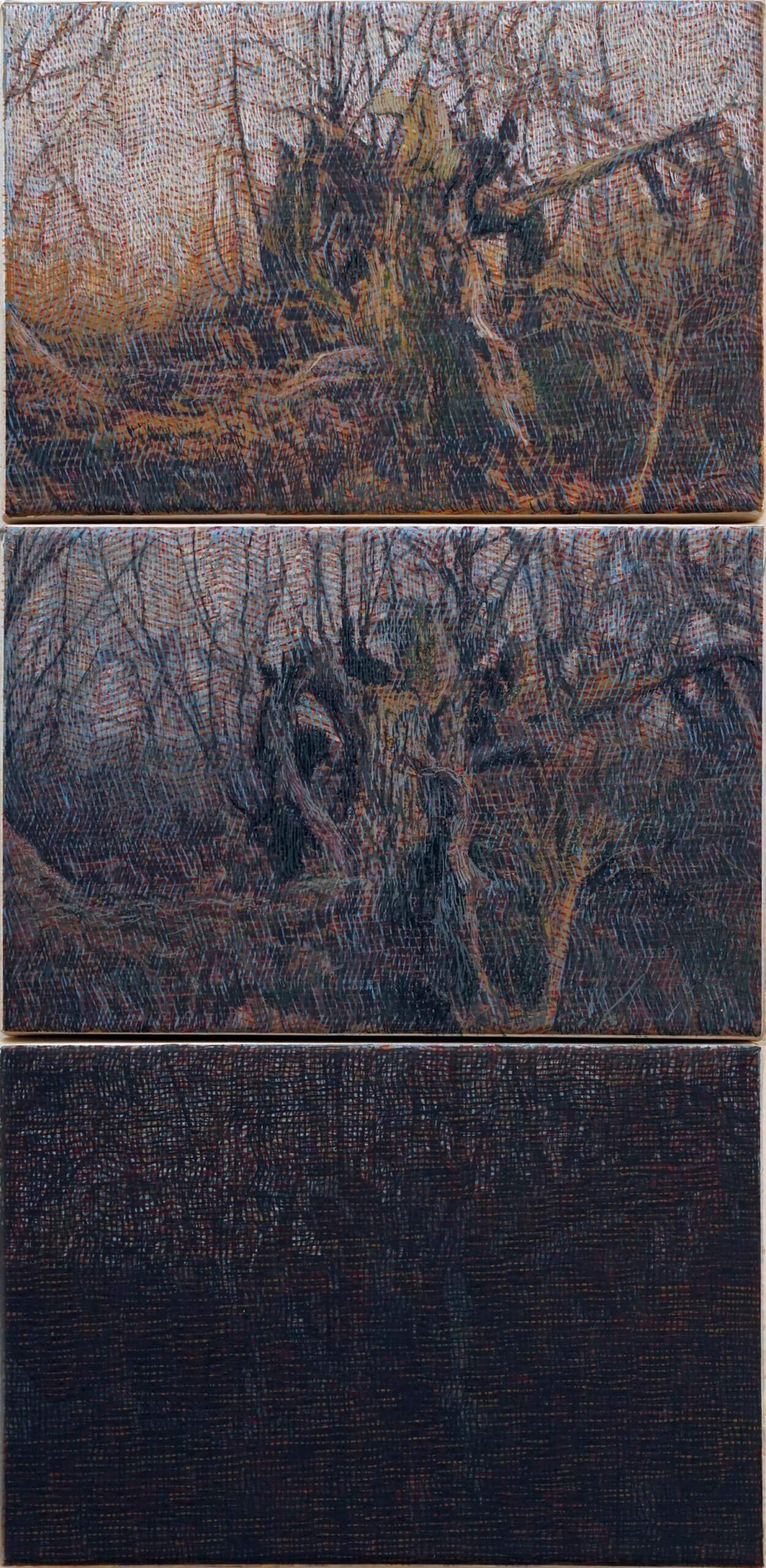 To bol začiatok, kedy vizuálna predstava splynie s predtým podvedomým nápadom, do vedomej metodiky. Totiž pri tých značkách, ktoré som konármi v krajine vytváral vlastné topografické body, ako keby som do svojho virtuálneho gpska zakresloval miesta, ktoré som následne maliarsky zamrazil v časovej vizuálnej chronológii.