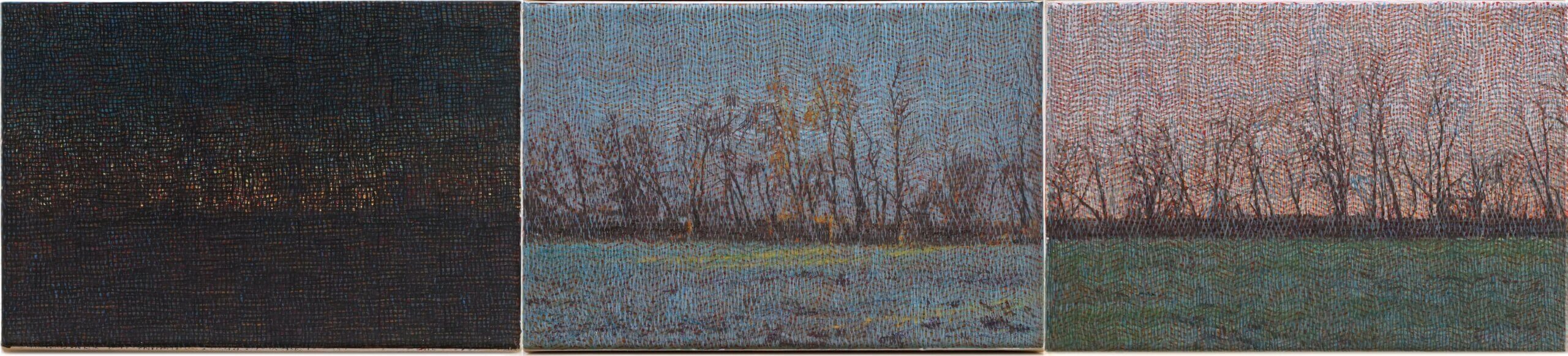 I deliberately avoided seeking out picturesque spots or “calendar views,” instead focusing on banal fragments of the landscape where nothing stands out with strong aesthetic value. Just as light shapes a given space throughout the day, the absorption of atmospheric space also changes the light and consumes it. Whether it’s fog or the low angle of the sun on the winter horizon, these reduce light intensity and colorfulness. All of these are mementos—memories of light in space and time