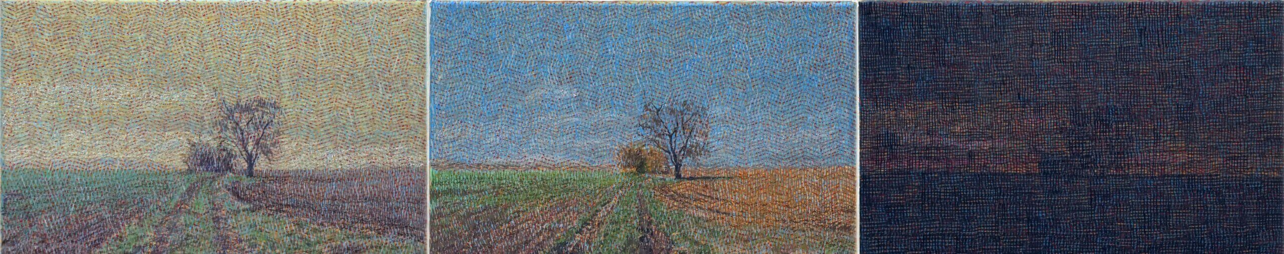 Tento cyklus primárne vznikol náhodne, pri jednoduchom podvedomom nápade, zhrnúť chronológiu dňa istého krajinného polocelku v sveteľných variáciach. Už pri mapovaní návrhov a cielených návštev krajiny v troch fázach dňa: poludnia, podvečera a noci som si všimol veľmi jednoduchý detail, ktorý spočiatku bránil presne definovať môj navrhovaný cieľ.